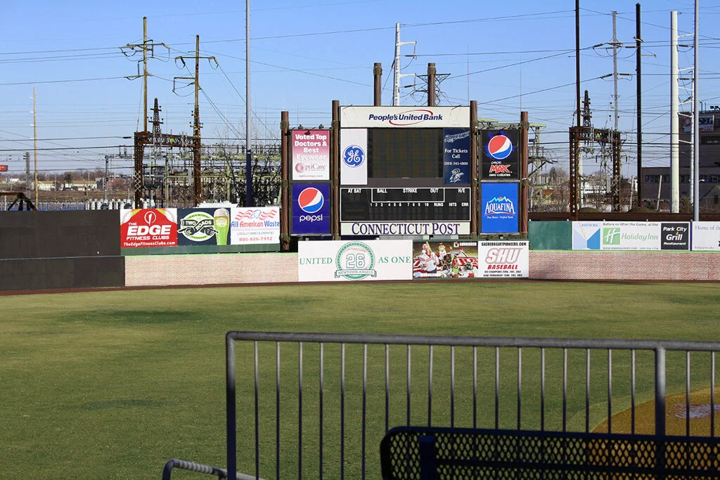 Newtown Angels Banner shown in Bluefish Stadium in Bridgeport, Connecticut.